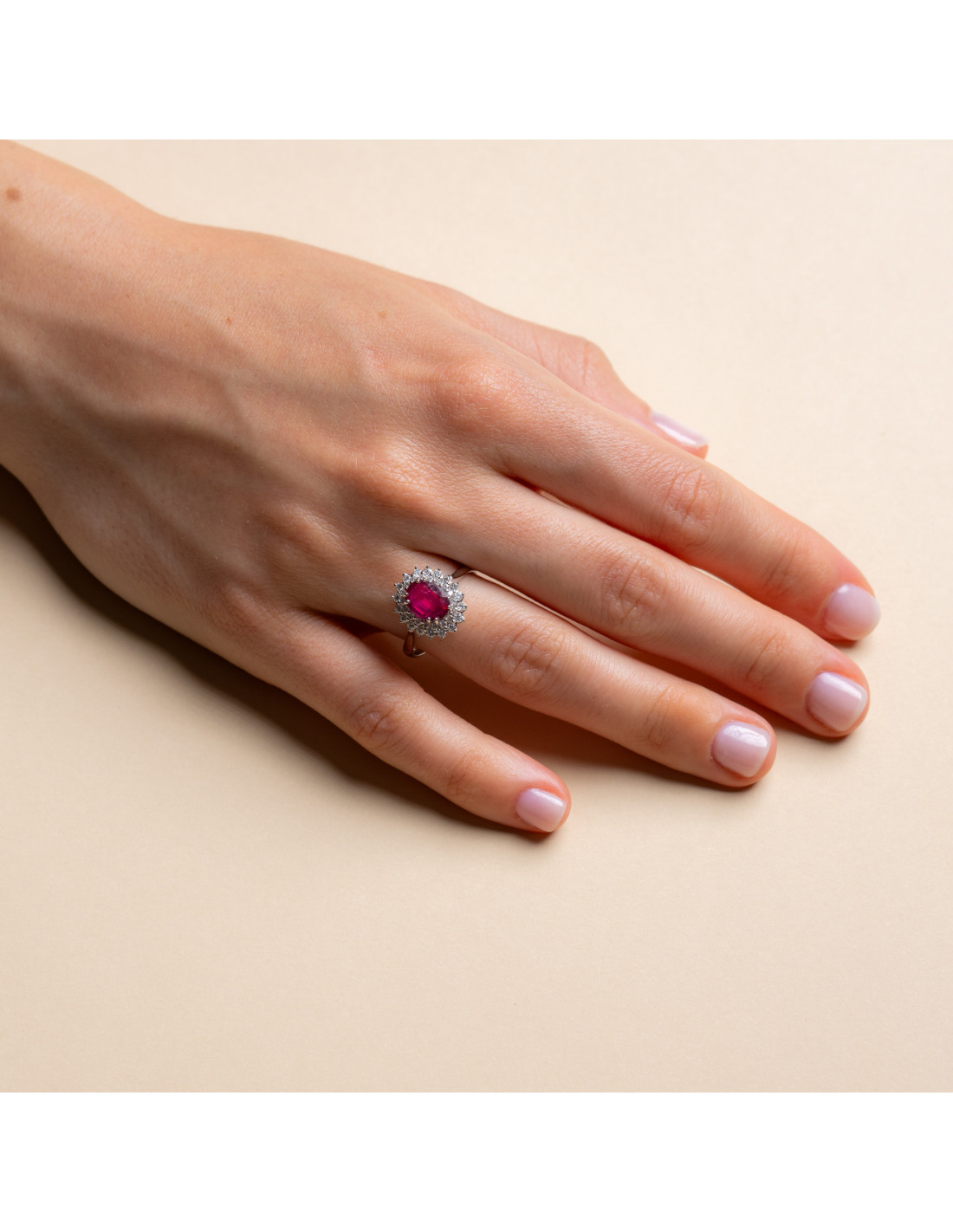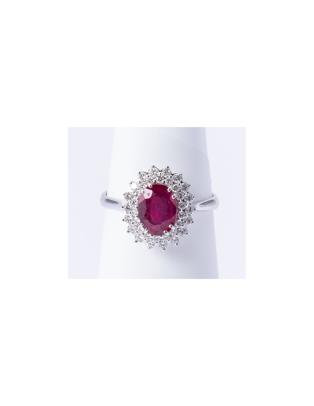 Anello Oro Bianco 18kt Rubino Ovale e Diamanti AN825027