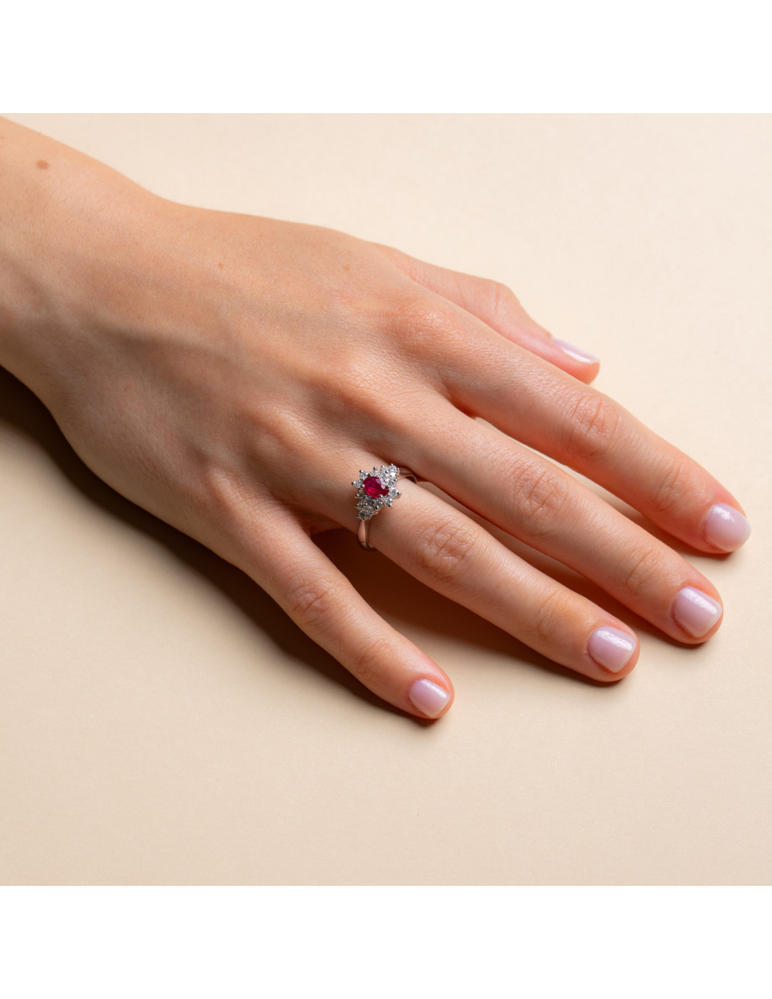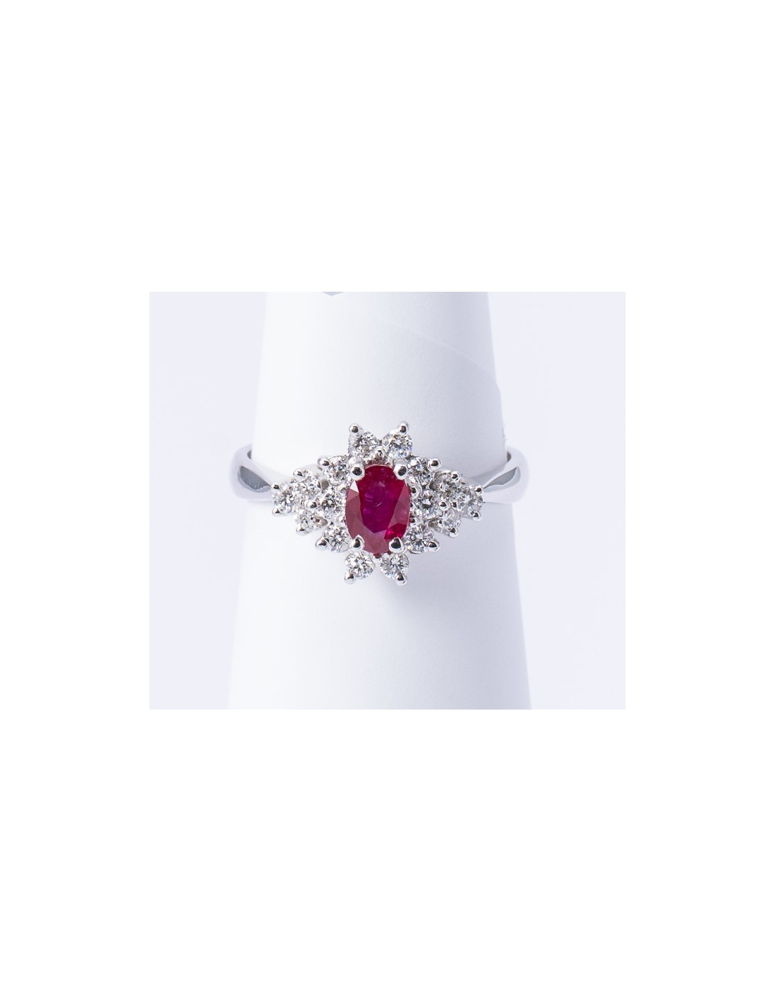 Anello Oro Bianco 18kt Rubino Ovale e Diamanti AN825030