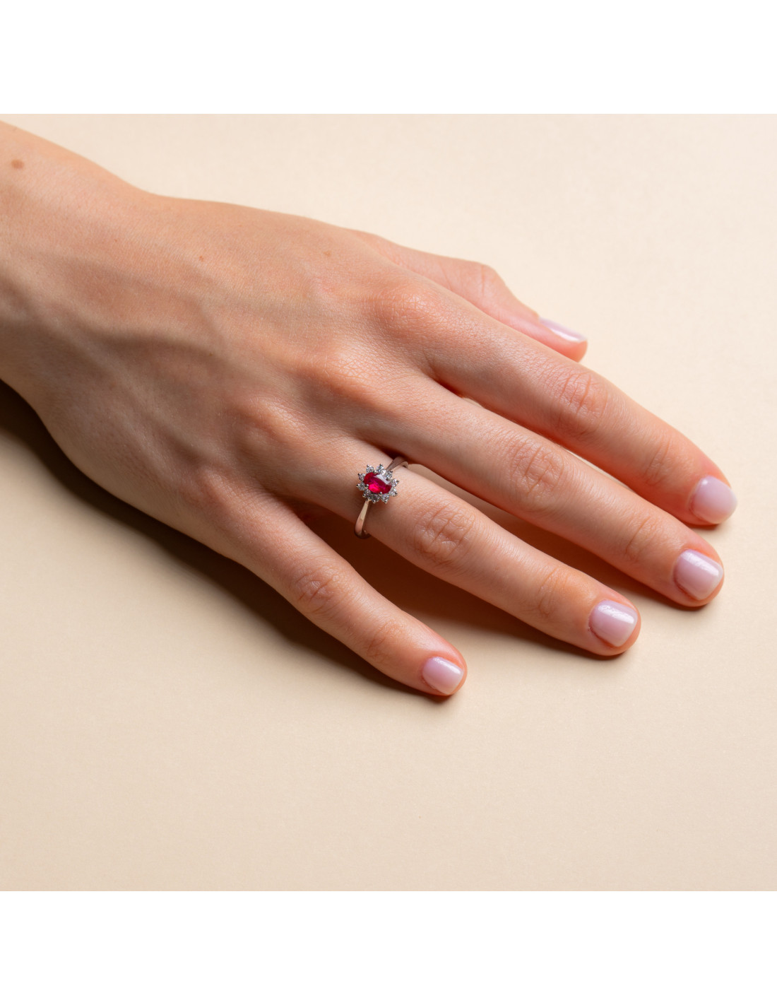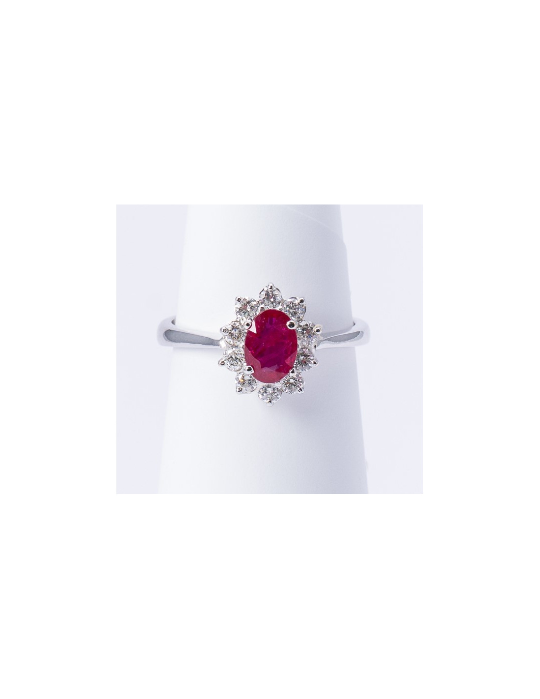 Anello Oro Bianco 18kt Rubino Ovale e Diamanti AN825033